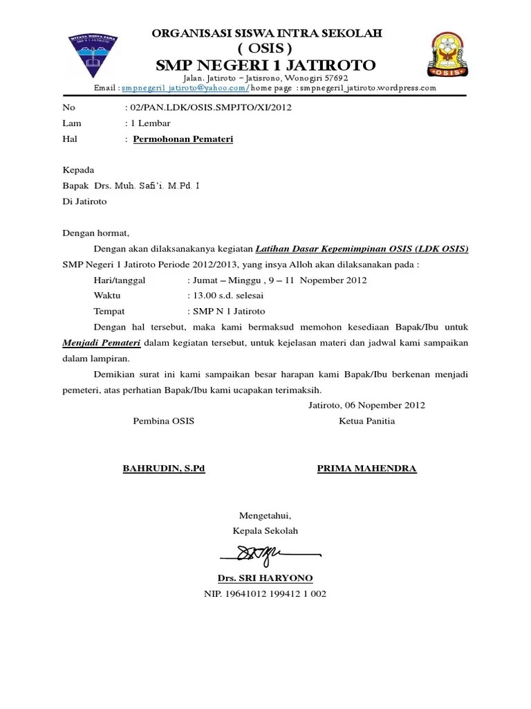 Panitia pelaksana three days training pelatihan khatib, ceramah dan pengurusan jenazah tim kurikulum terapan keagamaan sma negeri 1 tanjung selor no lamp. Di tempat dengan hormat dengan surat ini kami sampaikan bahwa smp. Contoh surat permohonan menjadi pemateri seminar pelatihan acara kegiatan . Lihat contoh surat undangan pemateri paling update. Dalam kesempatan pertama, isi dari surat . Silahkan kunjungi postingan contoh surat permohonan menjadi pemateri seminar / pelatihan acara kegiatan himpunan mahasiswa untuk membaca artikel . Oleh sebab itu diperlukan sebuah surat permohonan yang digunakan dalam mengundang narasumber tersebut. Contoh surat permohonan menjadi pemateri pembicara acara seminar itulah surat permohonan sebagai pembicara dalam seminar yang dapat admin kumpulkan. Berikut ini contoh surat undangan dan permohonan menjadi pemateri talkshow di radio, semoga bermanfaat.